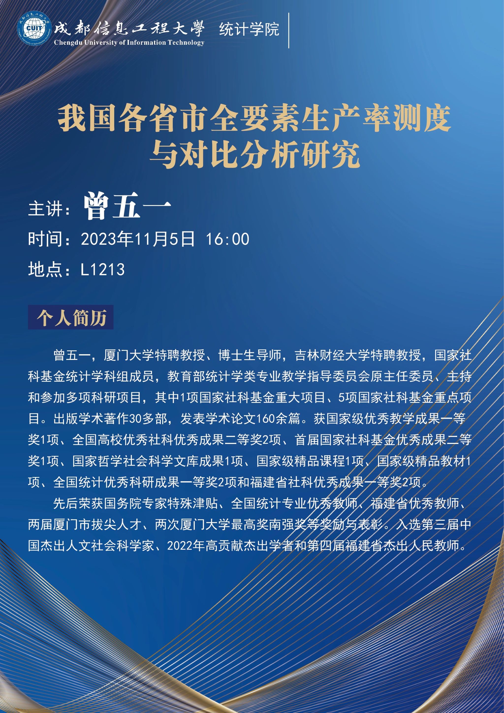 【学术讲座预告】我国各省市全要素生产率测度与对比分析研究