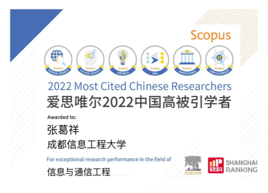 【本网讯】2023年3月28日,爱思唯尔(Elsevier) 与上海软科教育信息咨询有限公司联合发布2022“中国高被引学者”(Highly Cited Chinese Researchers)榜单。我校自动化学院张葛祥教授连续第三次入选。