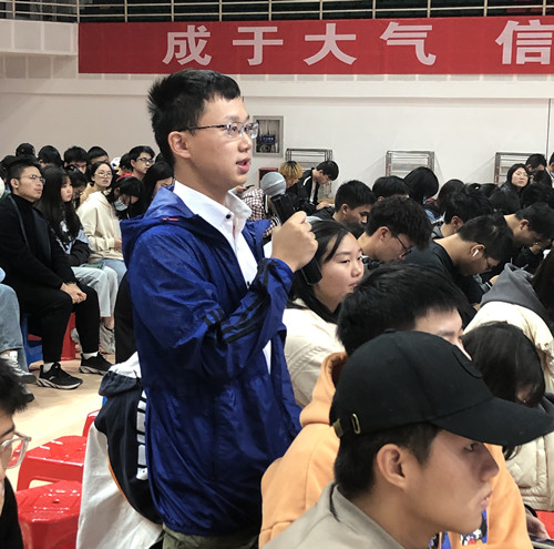 汤洪教授以“百年国学与国学未来”为题,以历史事件时间为轴,详细介绍国学的前世今生、当代“国学热”风生水起的前因后果,带领听众走进中华文化经典,为听众梳理了我国近现代文化发展与复兴的总体进程,深入浅出地诠释了国学的重要性。同时,旁征博引,结合实际案例,将国学精髓融会贯通,用生动诙谐的语言阐释经典,带领同学深入国学世界,感受国学的独特魅力。报告设置了提问环节,现场氛围热烈。报告后师生们纷纷表示受益匪浅,今后会努力学习传统文化,不断提高自身素质,坚定文化自信。