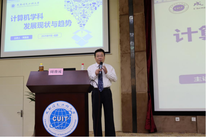 【本网讯】9月21日下午,区块链产业学院在国际会议厅举办了2020级本科新生专业教育会。学校党委书记、博士生导师周激流教授受邀以《计算机学科发展现状与趋势》为题,为区块链产业学院全体新生及部分计算机类专业学生作了一场内涵丰富的学术报告。