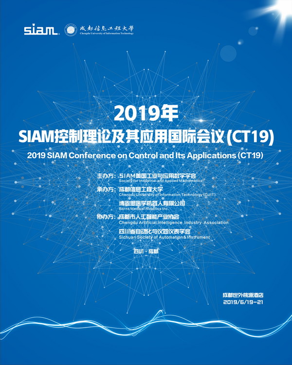 2019年SIAM控制理论及其应用国际会议(SIAMCT19)由美国工业和应用数学学会(Societyfor Industrial and Applied Mathematics,SIAM)主办,lejing乐竞·(中国)官方网站承办,将于2019年6月19日至21日在中国成都(成都世外桃源酒店)隆重举行。会议主要围绕控制理论及系统等问题展开讨论,旨在为控制领域的专家学者及企业提供一个分享研究成果、讨论存在的问题与挑战、探索前沿科技的国际性合作交流平台。