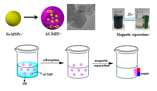 该文章提出了一种易于分离和可再生的磁性材料AC/MZF来代替传统的吸附剂(如活性炭)来吸附染料废水,该磁性吸附剂由锰锌铁氧体和活性炭结合制备而成,在附加的磁场下表现出明显的滞后行为。批量实验的结果表明了吸附等温线数据与Freundlich模型拟合良好,吸附动力学遵循准二级动力学模型,根据热力学计算,发现染料亚甲基蓝在AC/MZF上的吸附是自发吸热的物理过程。使用H2O2可以对AC/MZF进行有效的再生,5次循环后其吸附能力仍可以达到274mg/g。该论文的研究成果为染料废水的去除提供了新的思路和方法。