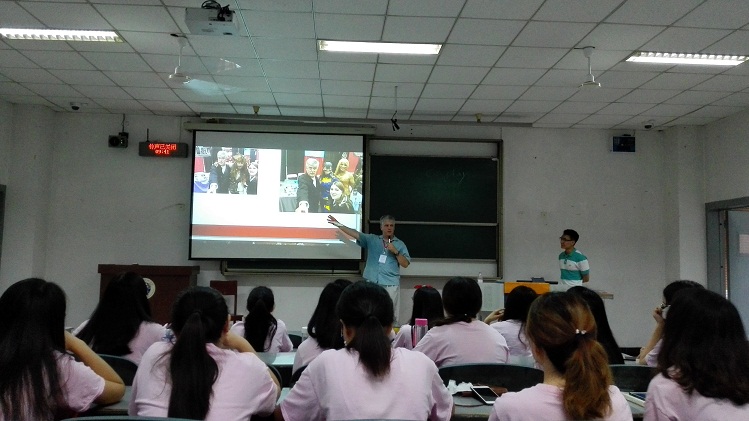 在2017国际教育周活动期间,Bruce Gentry博士为外国语学院学生开设了16个学时的语言文学和文化课程,举办了三场讲座,另外两场讲座主题分别为《拉什莫尔山的故事:从美国总统看美国文化价值观》和《美国体育的文化内涵》。通过参加课程学习、讲座以及英语习语的项目活动,同学们对于美国语言、文学和文化都有了更加深入的了解。