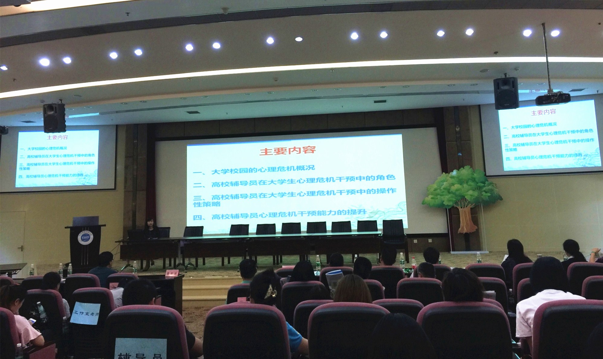 【本网讯】5月15日下午,学校学生工作处在航空港校区国际会议厅举办了“成信之光”讲坛第1期暨第12届5·25大学生心理健康月专题讲座,讲座题目为《高校辅导员心理教育能力与大学生心理危机干预》,由西南交通大学心理研究与咨询中心副主任陈华教授主讲。各学院党总支书记(副书记)、全体辅导员、班级心理委员代表及学生工作处相关工作人员聆听了讲座。讲座由学生工作处副处长闵卫东主持。