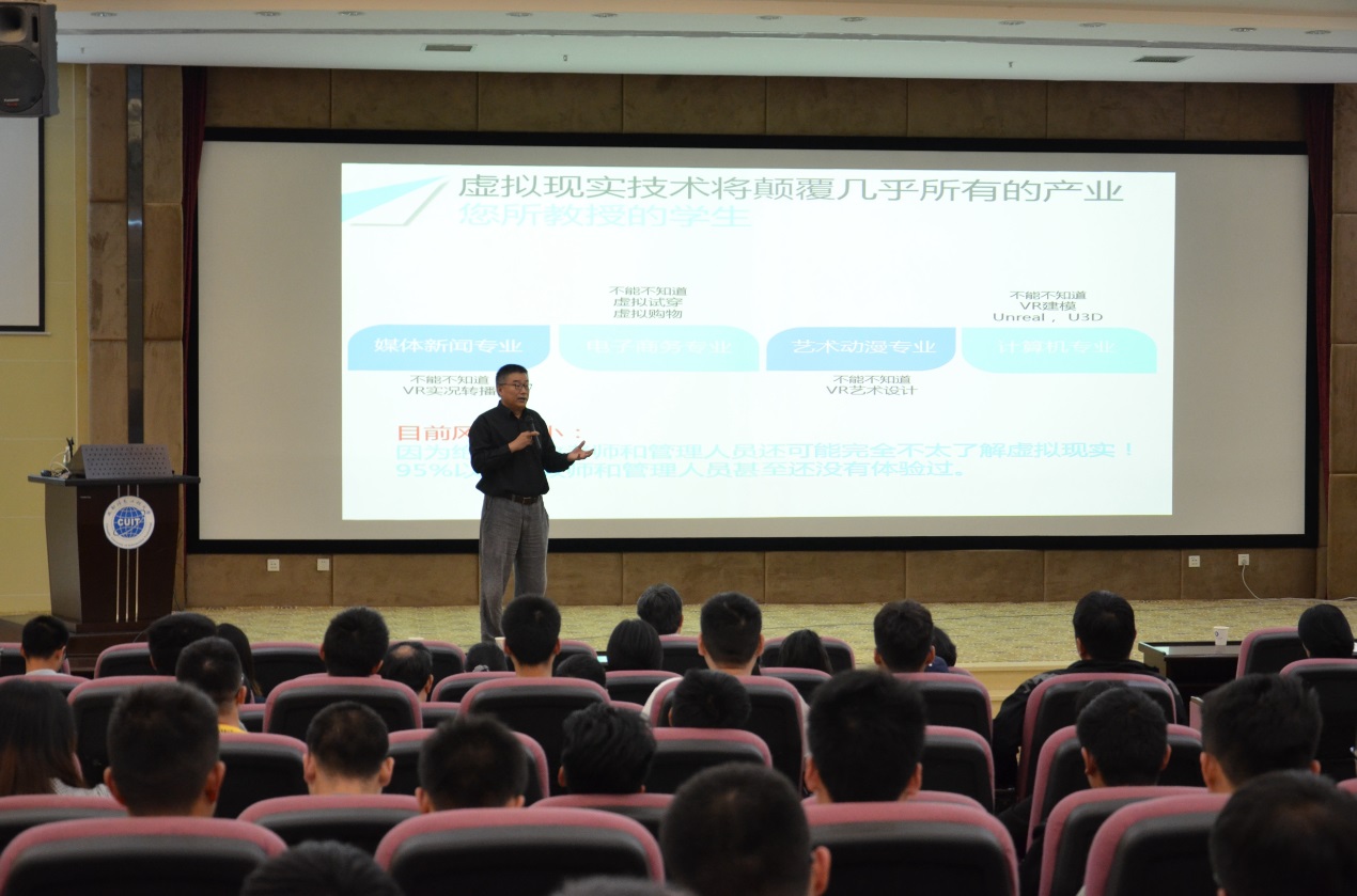 【本网讯】4月17日下午,北京航空航天大学教授、威爱(VIVEDU)教育CEO孙伟博士应邀到我校作了题为《虚拟现实—正在发生中的教育革命》的学术报告。报告会在国际会议厅举行,学校部分中层干部及相关专业教师、研究生、本科生共计240余人听取了报告。报告会由副校长何建新主持。