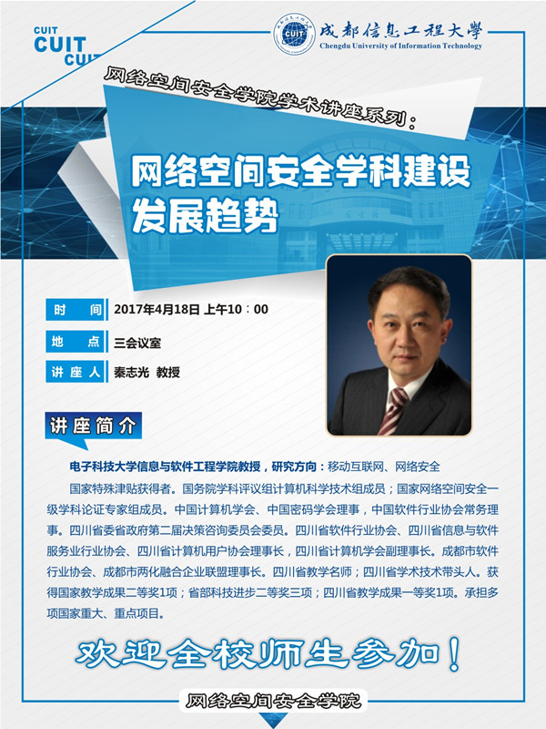 来源:网络空间安全学院 作者:杨润萍日期:2017-04-10 审核:新闻中心 点击: