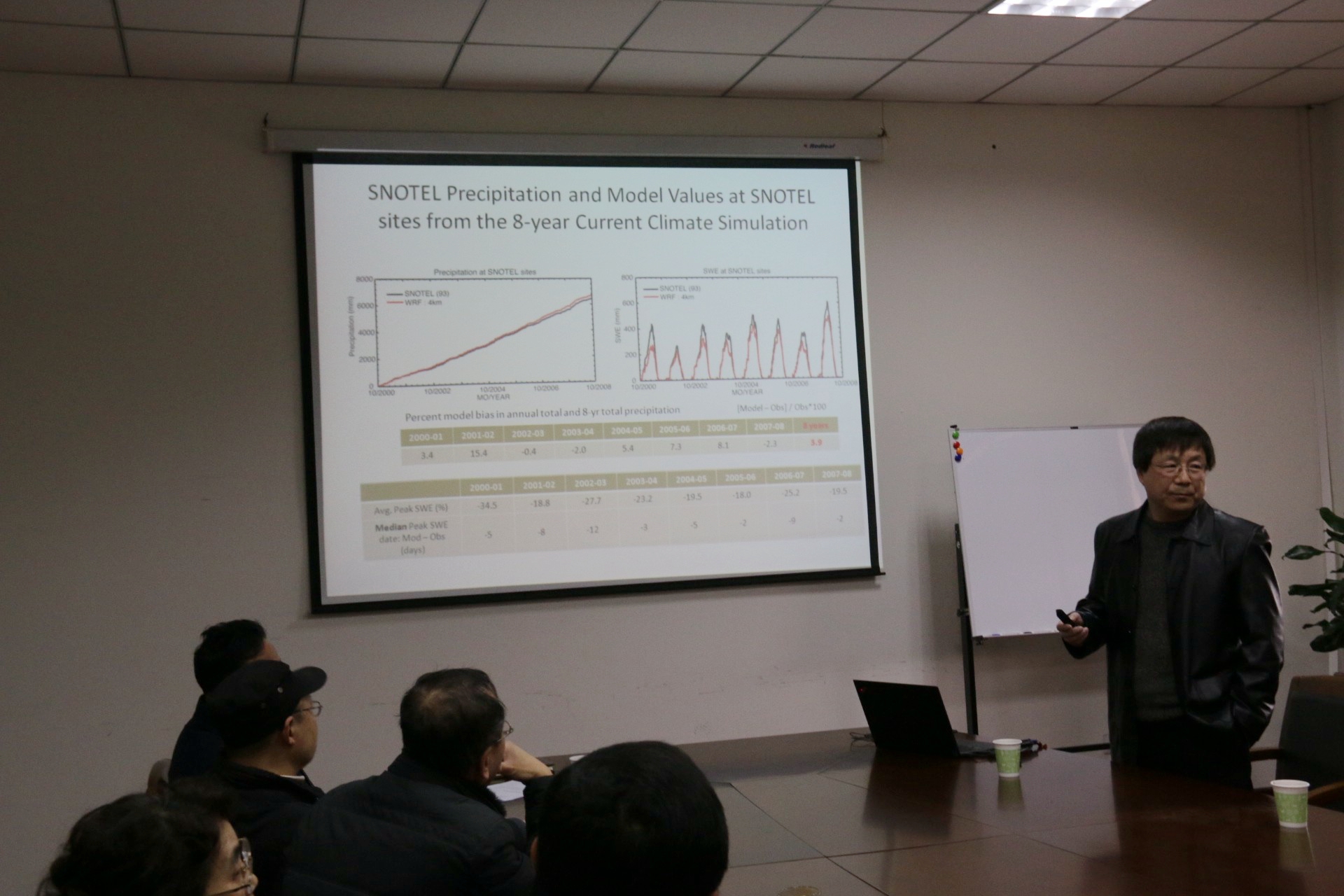 【本网讯】12月28日上午,美国国家大气研究中心刘长海博士、美国宾夕法尼亚州立大学邓爱军博士和美国国家海洋与大气管理局马再忠博士应邀来校,分别作了题为《High Resolution Regional Climate Simulations of the Water Cycle over the North America Including Potential Climate Change Scenarios》、《Effect of Data Assimilation in Numerical Weather Prediction Models》和《Himawari-8 AHI Radiance Assimilation with the GSI data assimilation system》的学术报告。报告由大气科学学院院长范广洲教授主持。