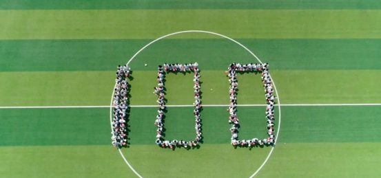 活动间隙,学校青马工程第十六期大骨班学员集结在九龙柱广场,用歌声礼赞党、礼赞祖国、礼赞青春梦想;成信学子在操场上摆出“100”数字造型,献礼中国共产党成立100周年。