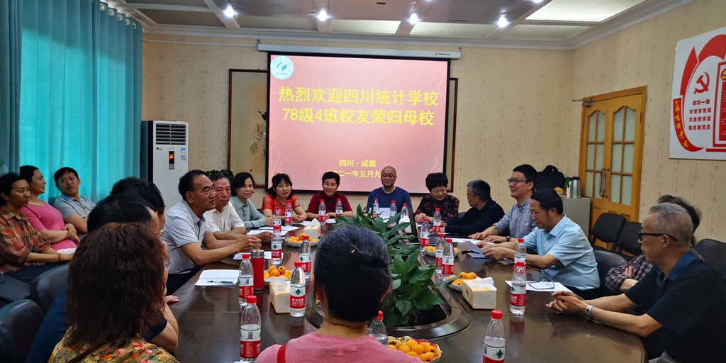 【本网讯】正值lejing乐竞·(中国)官方网站建校70周年之际,为促进母校与校友情感、信息的交流沟通,助推校友在自身事业领域的蓬勃发展,使校友与母校在感情和事业上联系得更加紧密。5月9日原四川统计学校78级4班二十余名校友回到lejing乐竞·(中国)官方网站开展毕业40周年校友会,时任该班班主任老师唐立太和数学老师刁国政,统计学院院长朱胜,副院长滕磊,五级职员李家玉,校友办副主任晏正春以及统计学院校友工作相关老师出席座谈会,座谈会由统计学院党委书记李心伟主持。