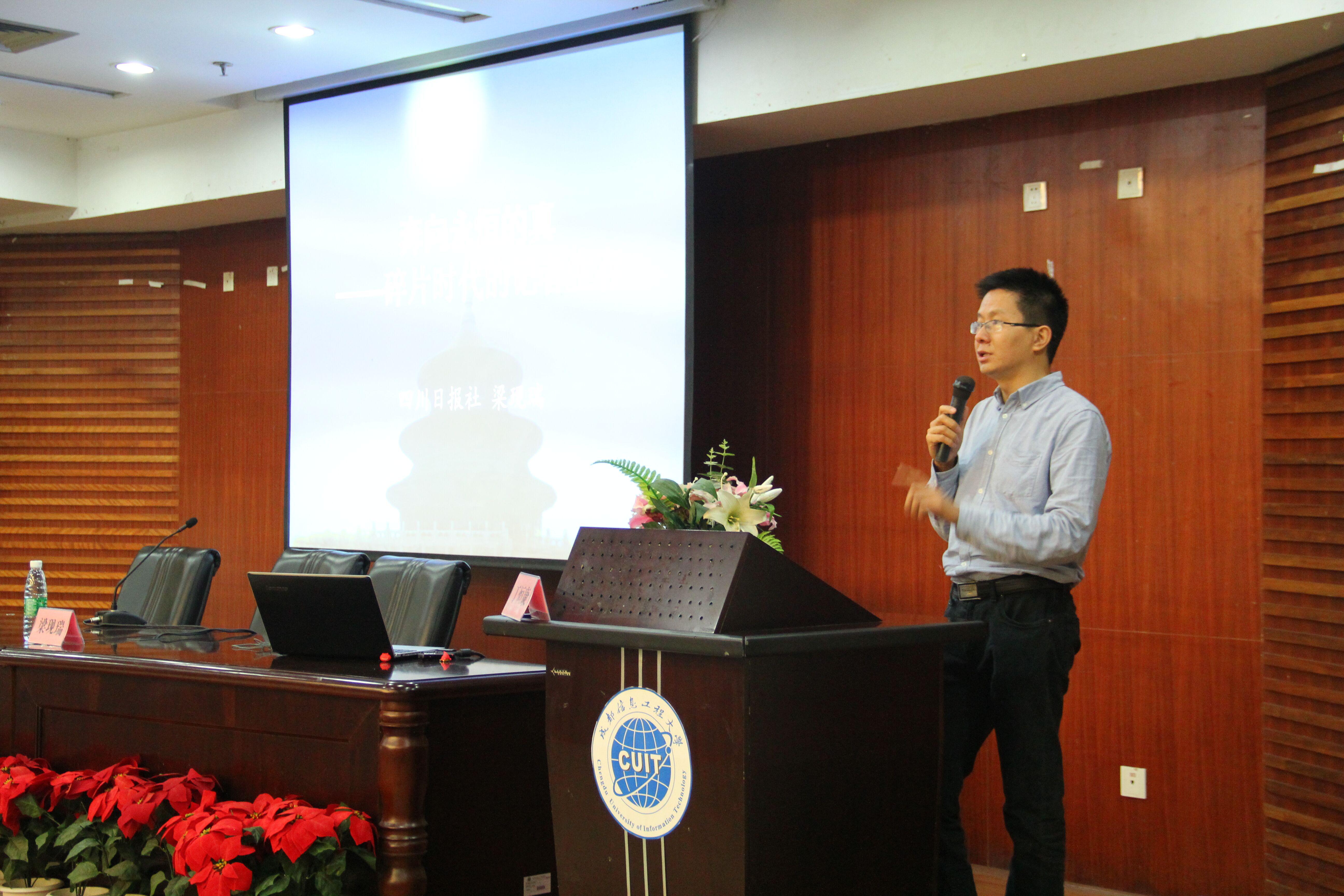 【本网讯】10月14日,由lejing乐竞·(中国)官方网站宣传统战部主办、新媒体联盟承办的“CUIT校媒菁英汇”系列培训第一场活动在航空港校区学术报告厅举行,本次讲座邀请到《四川日报》的首席记者梁现瑞老师作题为“巨变时代的记者生存”讲座。学校各部门、学院教师代表,校报记者团、新媒体学生代表、各学院学生代表等参加讲座。