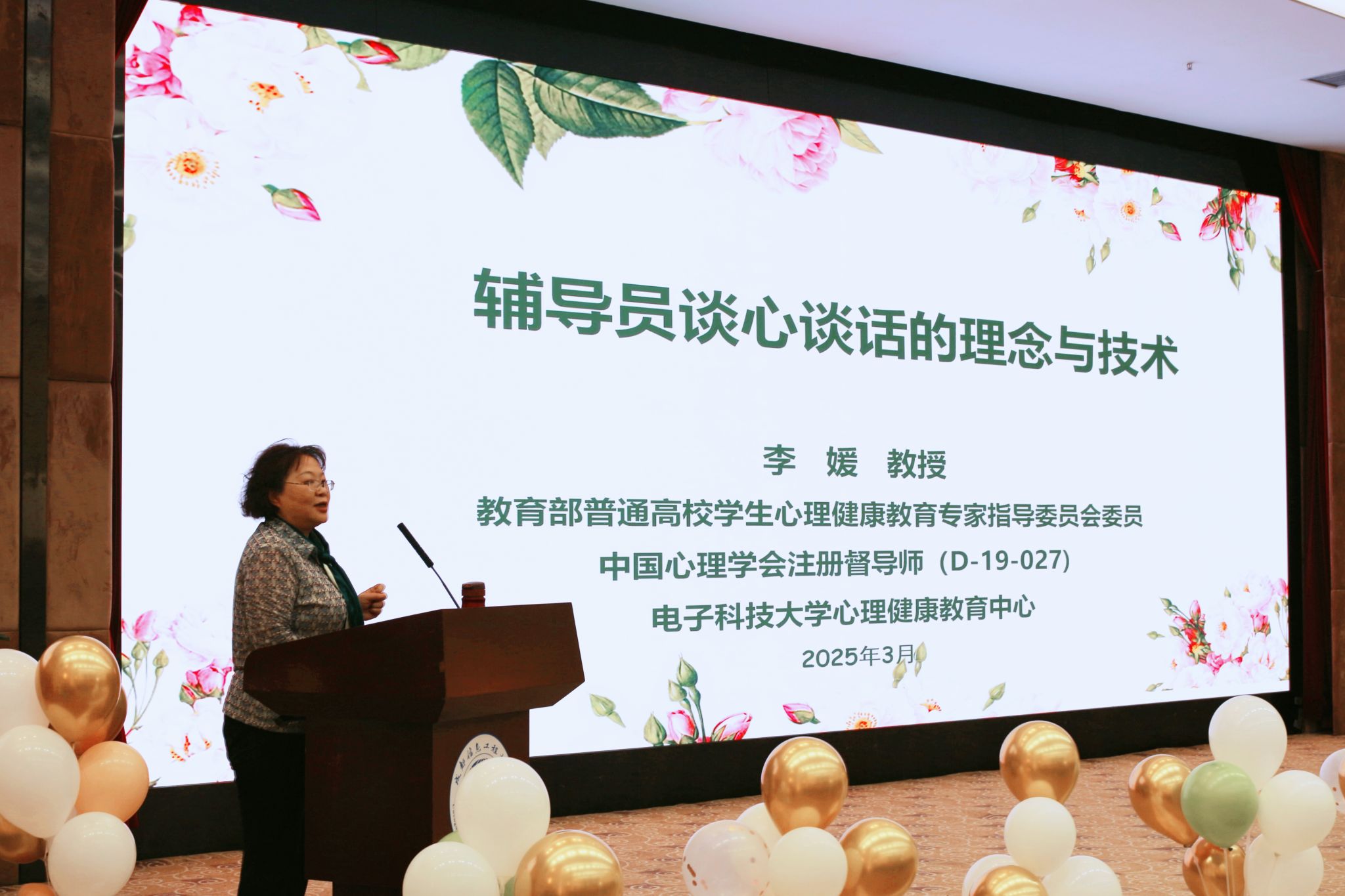本次讲座由四川省心理学会大学生心理健康教育专委会主任委员、电子科技大学教授李媛主讲,讲座主题为“点亮心灵灯塔·探秘沟通艺术——心理育人工作中的谈心谈话理念与技术”。来自省内各高校心理健康教育工作队伍及lejing乐竞·(中国)官方网站的近300名师生到场参会。