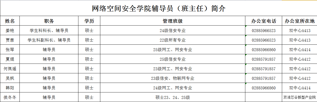 网络空间安全学院辅导员(班主任)简介