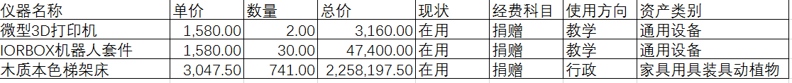 ),我校近两年共受赠以下设备,并纳入固定资产进行管理,按照学校固定资产管理办法进行