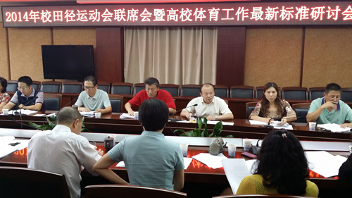 何建新传达了教育部《高等学校体育工作基本标准》和《国家学生体质健康标准》等文件主要精神,体育部主任谢清明对2014年大学生体质健康测试和召开2014年田径运动会等具体工作进行了说明,校工会副主席高永华就教工参加田径运动会的有关事项作了部署,何建新就会议作了总结讲话。