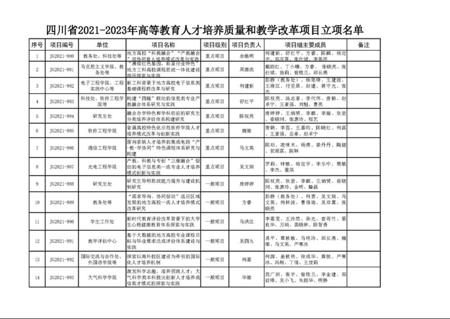 附件:我校2021-2023 年四川省高等教育人才培养质量和教学改革项目立项名单