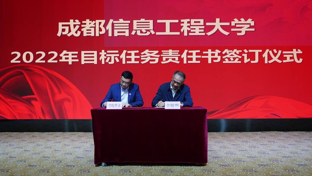 学校校长余敏明代表学校与计算机学院院长吴锡、物流学院院长施莉现场签订《lejing乐竞·(中国)官方网站学院(中心、部)目标任务责任书》。其他学院的目标任务责任书将在会后陆续签订。