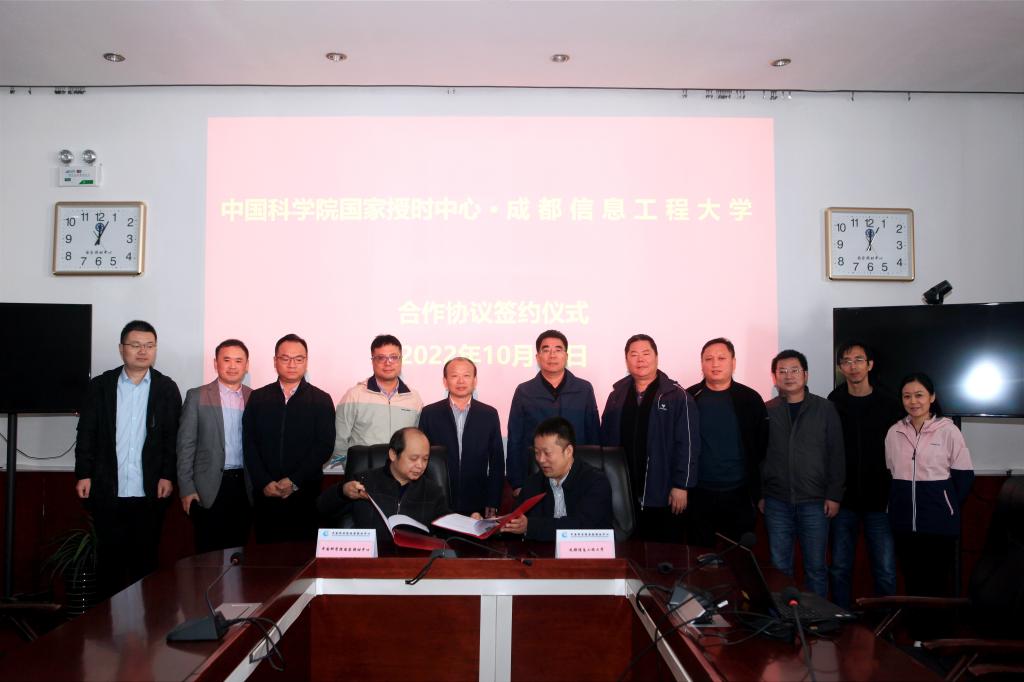 【本网讯】10月11日上午,学校与国家授时中心在西安临潼签署合作协议。国家授时中心主任张首刚、副主任李孝辉,学校副校长何建新、舒红平及双方单位相关负责人等参加了此次签约仪式。