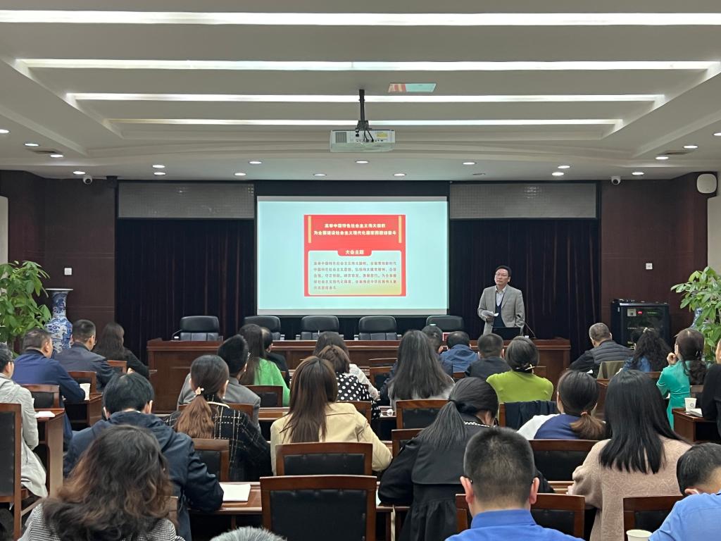 会后,马洪江作《党的二十大精神》专题宣讲,学校各职能部门负责人,各学院党委书记、专职副书记、专职组织员,学生工作处、校团委全体工作人员,部分师生党员代表100余人参加了学习。