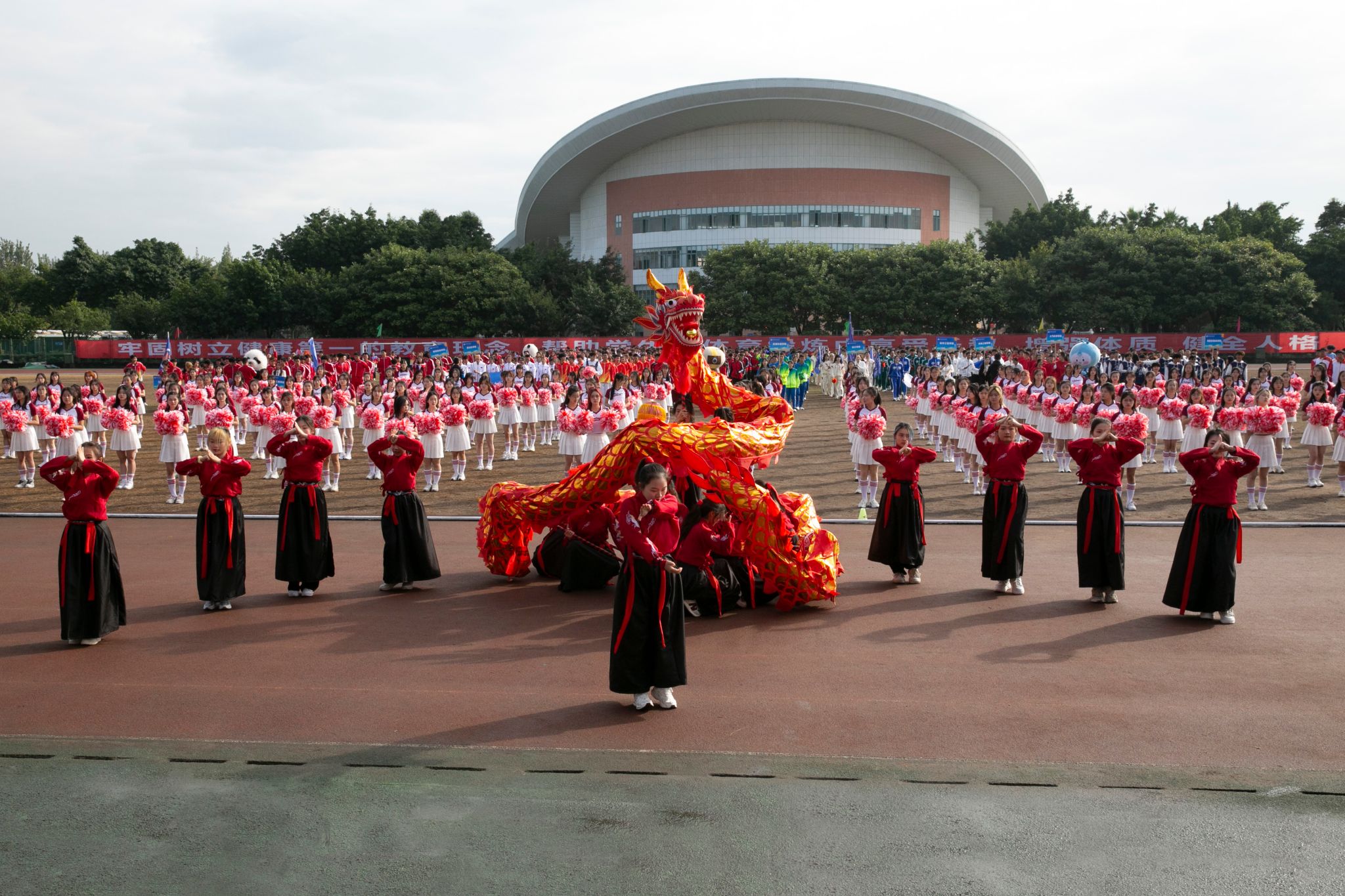 运动员代表入场仪式在慷慨激昂的进行曲中拉开序幕,20余个来自各学院的运动员和教职工代表队,英姿勃发、整齐划一地步入运动场,呈现出特色鲜明、生动活泼的花式队形,充分彰显了成信人自信自强、拼搏奋进的昂扬精神风貌。在现场观众的欢呼喝彩声中,由体育部、校团委和来自各学院的同学们带来了精彩的开幕式表演,伴随着热情洋溢的歌曲,苍劲有力的中国风街舞节目《龙拳》、活力四射的团体操《青春飞扬》和神采飞扬的舞龙舞狮等体育艺术表演项目,为现场观众带来一场视觉盛宴。