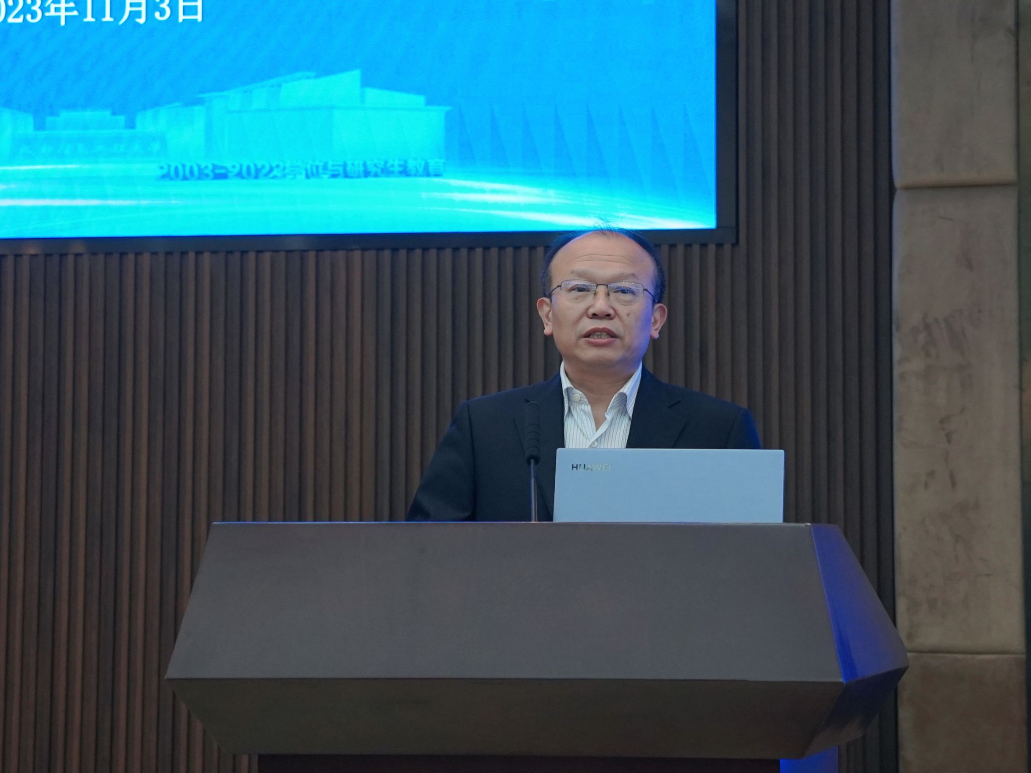 何建新教授致开幕词。何建新回顾了学校研究生培养历史,他提到,研究生学术论坛为广大师生搭建了一个交流学术思想、分享学术成果、探讨学术前沿的平台,研究生们可以充分运用论坛,多交流,逐步构建科学研究的思维。何建新强调,当前国家正处在新的历史起点上,党的二十大报告把教育、科技、人才三位一体统筹安排、一体化部署,同时培养具有扎实学术基础、独立研究能力和强烈创新意识的高素质人才,是落实教育科技人才三位一体战略部署的迫切要求。他勉励研究生同学秉持创新,坚持奋斗的良好精神风貌,在交流当中分享知识的乐趣,在研究当中品味科学的魅力,在学习当中体会成长的收获,睿智求索,始终保持求新探异的激情和强烈的创新欲望,不畏艰难、开拓进取、勇攀高峰,争取早日成为担当民族大任的时代青年。