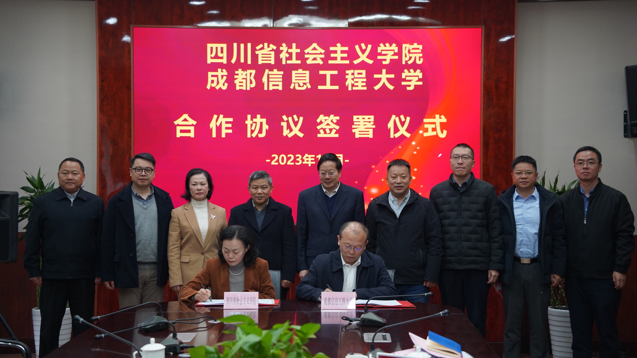 【本网讯】12月1日,四川省社会主义学院(以下简称“省社会主义学院”)党组书记、省委统战部副部长万群,正厅级领导贺盛瑜一行到我校走访调研。学校党委书记沈火明,校长、党委副书记何建新参加会议。会议由副校长舒红平主持。贺盛瑜、何建新分别代表双方签署了战略合作框架协议。