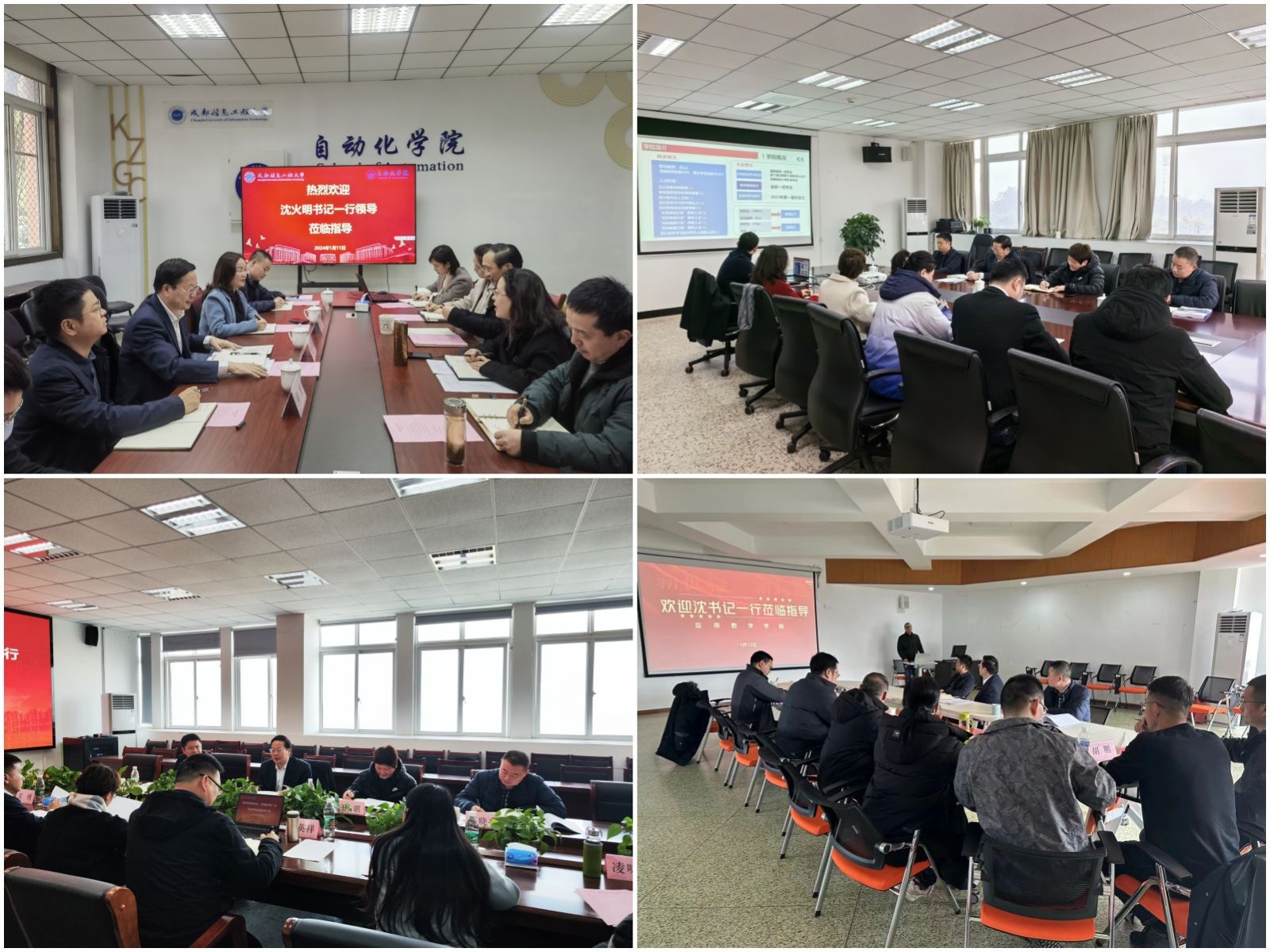 【本网讯】1月11日-12日,学校党委书记沈火明先后到软件工程学院、自动化学院、计算机学院、通信工程学院、应用数学学院开展调研,省纪委监委驻校纪检监察组组长、党委副书记、纪委书记王琪,副校长吴锡、罗小蓉参加了部分学院的调研活动。
