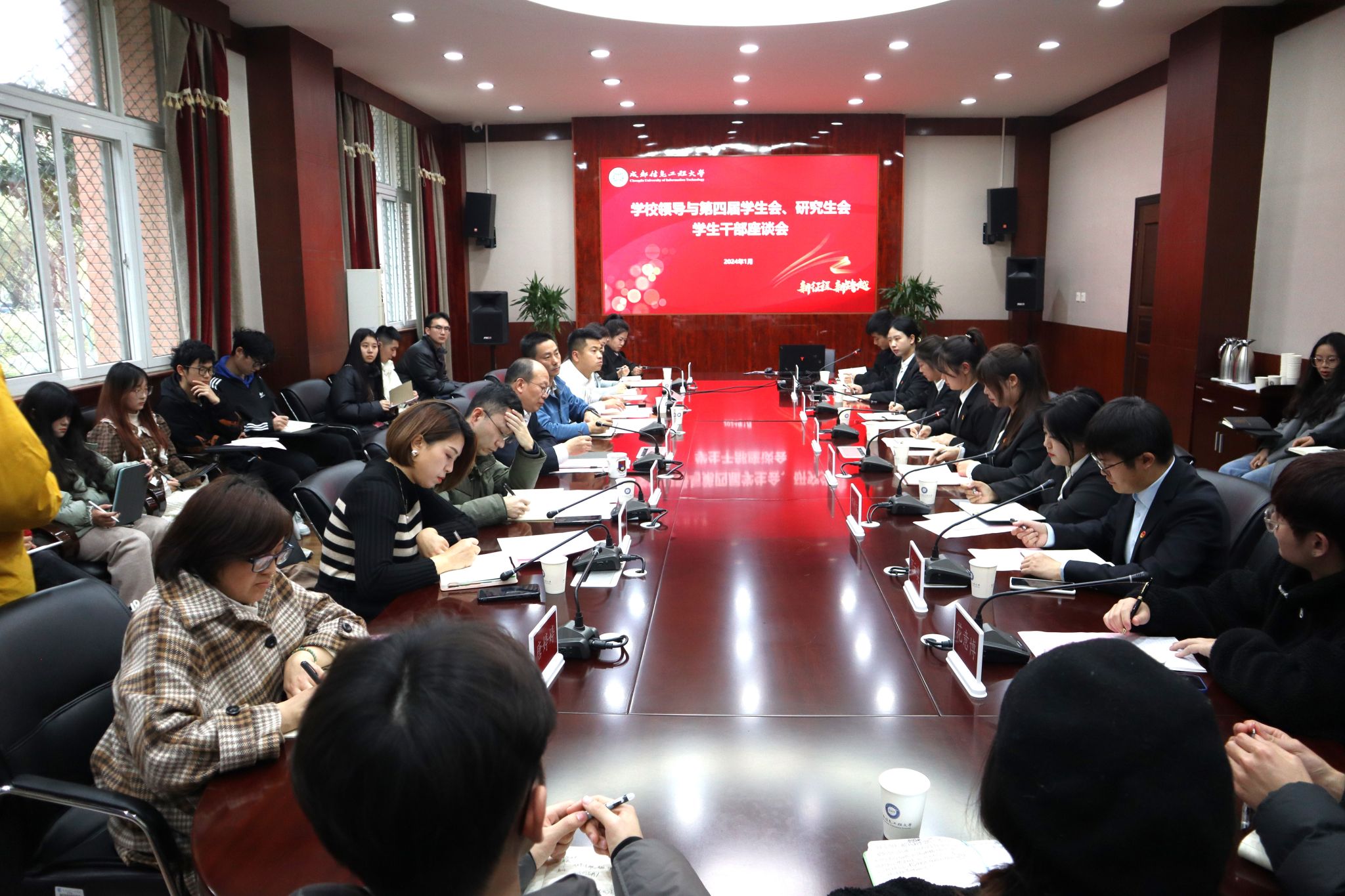 【本网讯】1月12日,学校在航空港校区行政楼第六会议室召开学生干部代表座谈会,学校校长何建新、副校长陈权亮出席会议,党政办公室、党委学生工作部、研究生处、校团委相关负责人,校学生会、研究生会30余名学生干部代表参加会议。座谈会由陈权亮主持。
