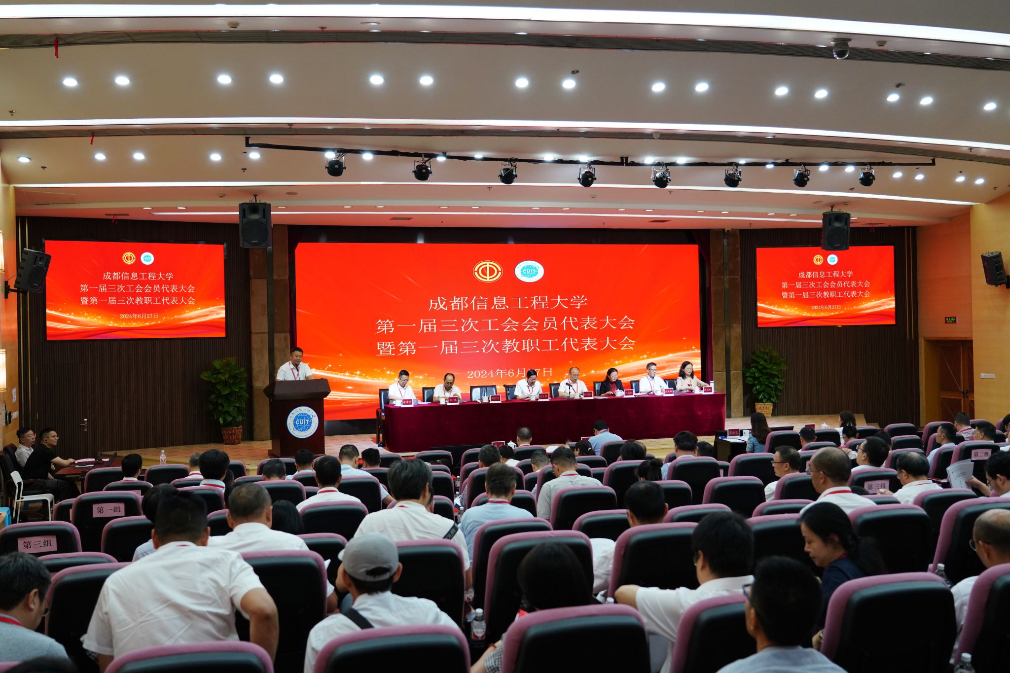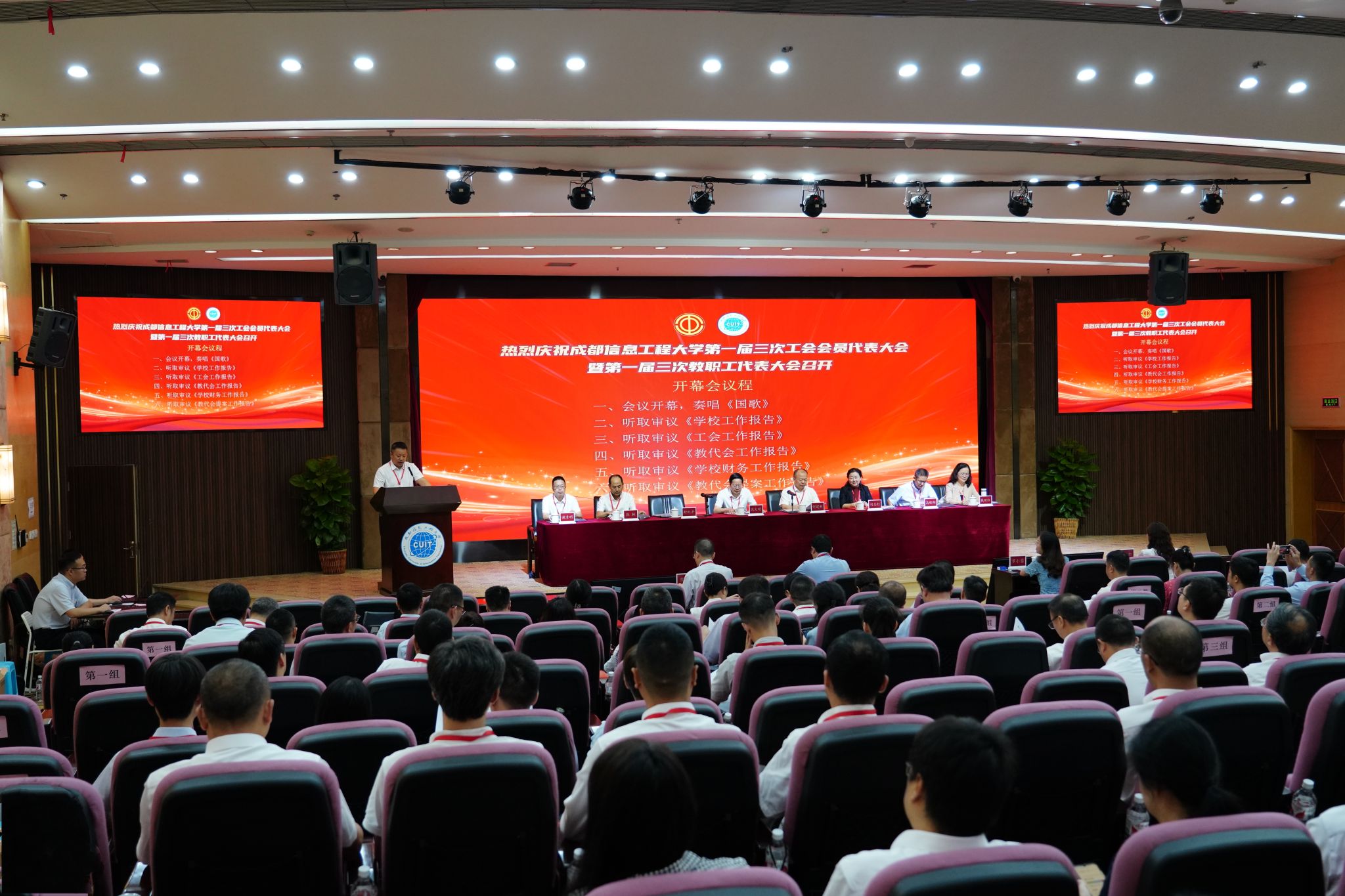 第一届三次工会会员代表大会暨第一届三次教职工代表大会在庄严的国歌声中开幕。