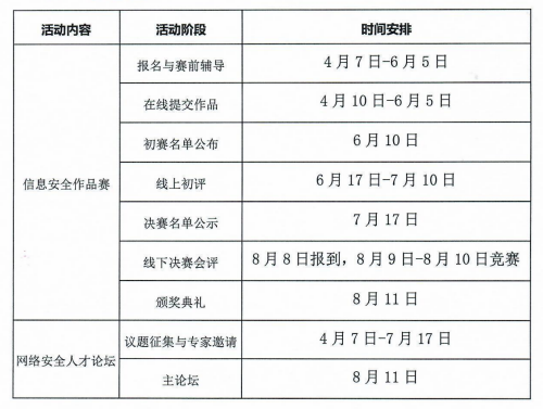 1. 信息安全作品赛的网上报名起止时间为:2024年4月7日至2024年6月5日24时。