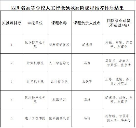 关于2024年四川省高等学校人工智能领域高阶课程拟推荐课程的公示