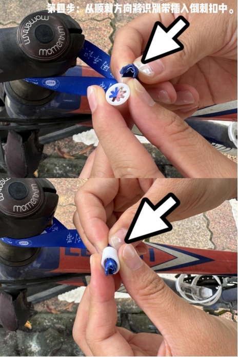 为防止识别带不慎滑落请按照图文佩戴步骤提示(详见附件),将识别带佩戴至不易脱落的位置。该识别带采用一次性倒刺扣收口,未确定佩戴位置前请勿尝试收口以免浪费物料,谢谢配合!