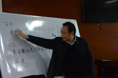 讲坛首先从赏析欧阳东宁画家的水墨易经系列画作品开始,通过作品,欧阳东宁介绍了其创作的心路历程,并对《易经》所蕴含的辩证思想,进行了启发式讲解和解读。其中的问答合一的互动环节,带动整个讲坛达到高潮。欧阳东宁特别强调,在视觉传达设计作品中,需要高度体现中国传统文化精神的价值内涵,尤其在平面设计中需要了解易经中的天干地支,以及处理好太极阴阳关系,并对物象进行符号化抽象化处理。讲坛始终都以欧阳东宁作品为个案案例进行讲授,生动形象、趣味横生,同学们收获颇丰。