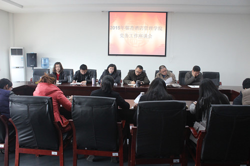 【本网讯】1月14日下午,学院党委在行政楼五楼会议室召开了2014年党务工作总结座谈会。党委办公室、宣传统战部、学生工作部、保卫部、机关党总支负责人和各系党总支副书记、直属支部书记参加了会议。会议由党委办公室主任程莉同志主持,学院党委副书记桑作银出席了会议。