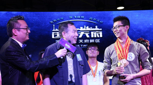 最后,来自成都的8号选手赵飞在“一分钟奇迹”中夺冠,获得“奇迹之星”称号,我校成都研究院院长、“成创空间”创始人宫冠英荣任“奇迹之星”的创业导师并为其颁奖。