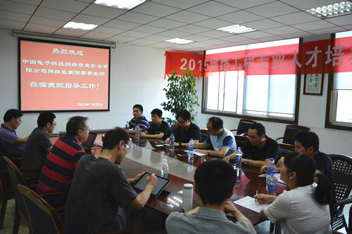 【本网讯】7月28日下午,中国电子科技网络信息安全有限公司(简称“中国网安”)网络监测预警事业部总经理张焱、副总经理刘刚等一行7人来我校信息安全工程学院磋商合作事宜。信息安全工程学院院长李飞、副院长张仕斌及部分信息安全专业教师与张焱一行进行了座谈。