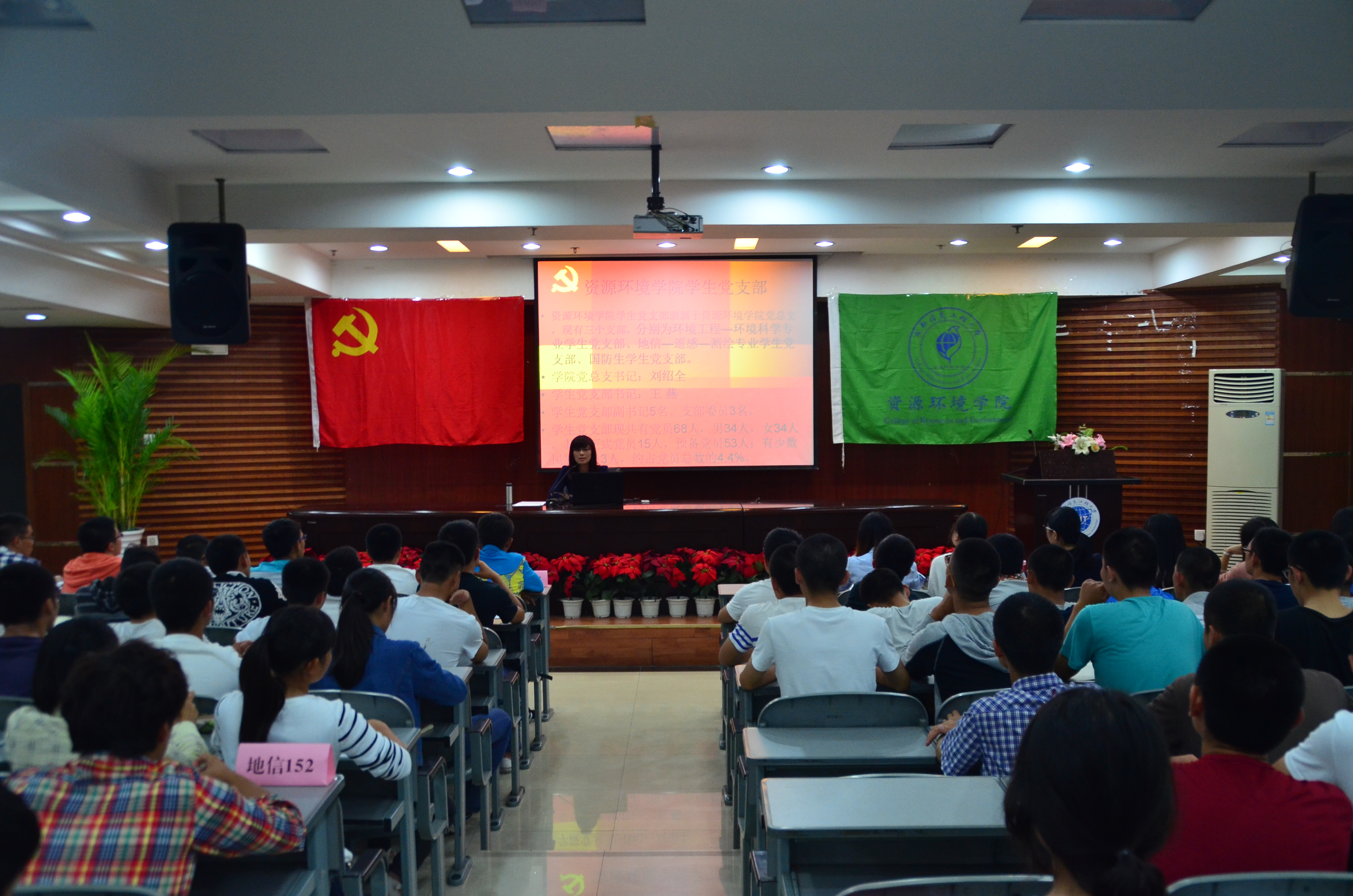 【本网讯】9月27日,资源环境学院2015级新生入党知识专题讲座在学术报告厅举行。学生党支部书记王燕老师主讲,全体2015级新生参与本次讲座。