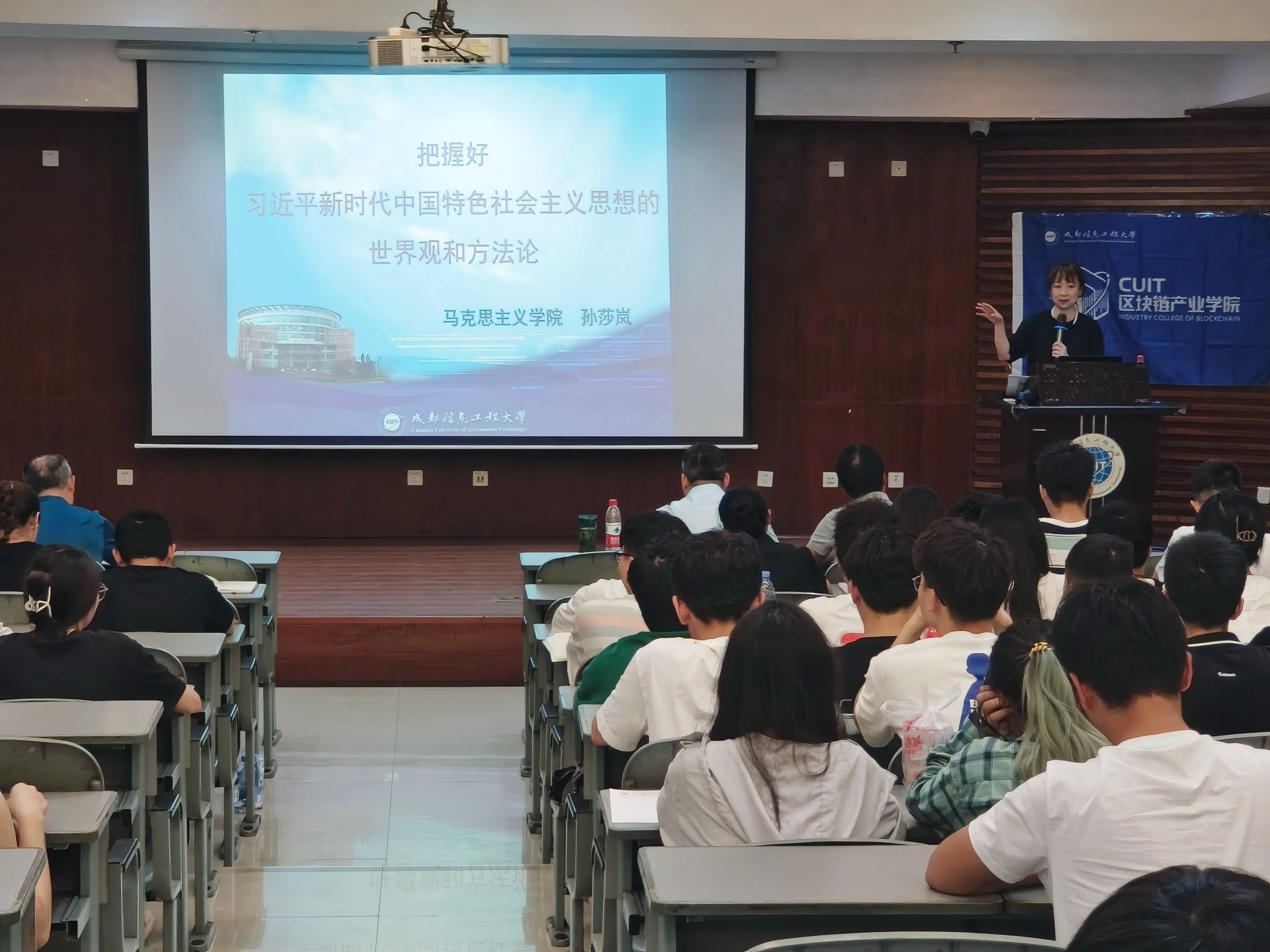 【本网讯】自学习贯彻习近平新时代中国特色社会主义思想主题教育启动以来,区块链产业学院党委深入贯彻落实学校关于主题教育的各项决策部署,牢牢把握“学思想、强党性、重实践、建新功”的总要求,结合学院实际,全面开展主题教育。5月30日下午,学院党委邀请学校主题教育理论宣讲团成员、马克思主义学院副院长孙莎岚在学术报告厅作《把握好习近平新时代中国特色社会主义思想的世界观和方法论》专题辅导报告。报告由学院党委书记林细俤主持,学院全体教职工、学生党员、发展对象和入党积极分子参加。