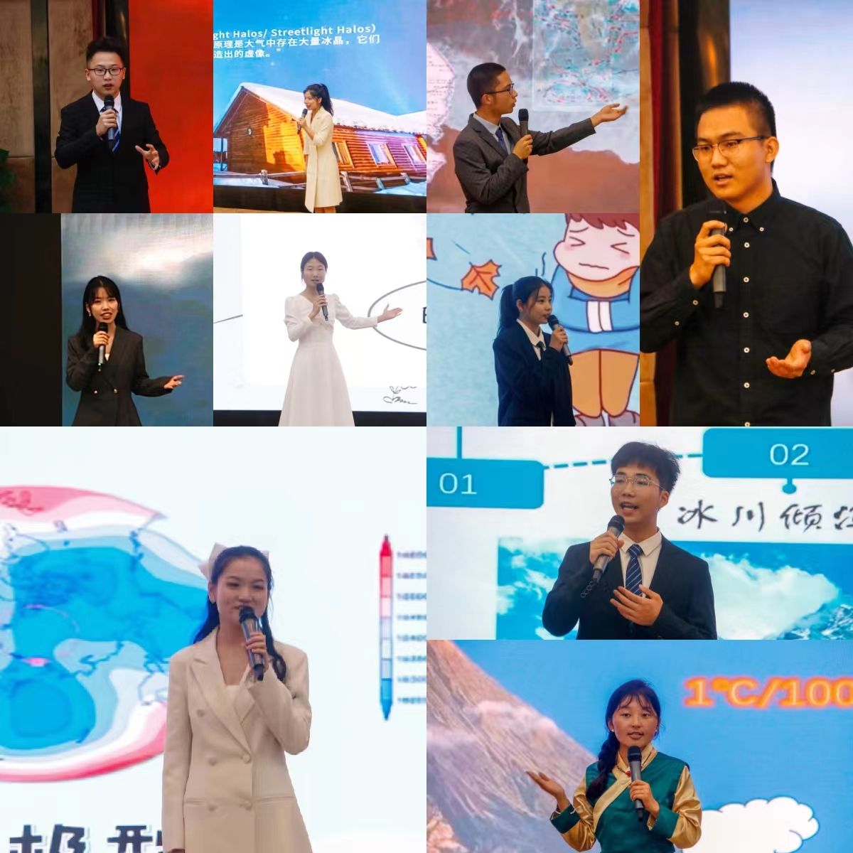 总决赛采取线上线下的方式同步直播,参赛选手围绕天气现象、气象灾害以及气象预报技术等方面,进行了深入浅出、绘声绘色的讲解,内容丰富多彩,为全校师生呈现了一场精彩的气象科普知识盛宴。经过激烈角逐,最终,来自资源环境学院的张雪晨老师、大气科学学院的闫纡含同学分别获得“lejing乐竞·(中国)官方网站第四届气象科普讲解大赛”教师组与学生组一等奖。同时,大赛还评出了教师组和学生组二等奖各2名,三等奖各3名,优秀奖教师组5名、学生组4名。