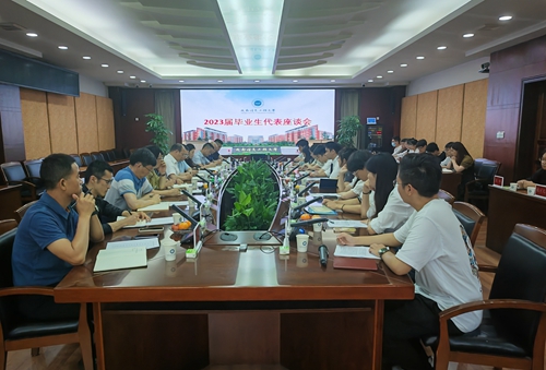 【本网讯】6月15日下午,2023届毕业生代表座谈会在航空港校区第七会议室召开,校长何建新,党委办公室、校长办公室、党委宣传部、党委学生工作部、党委保卫部、教务处、研究生处、招生就业处、计划财务处、后勤基建处、校团委负责人,2023届毕业生代表参加了座谈。会议由何建新主持。