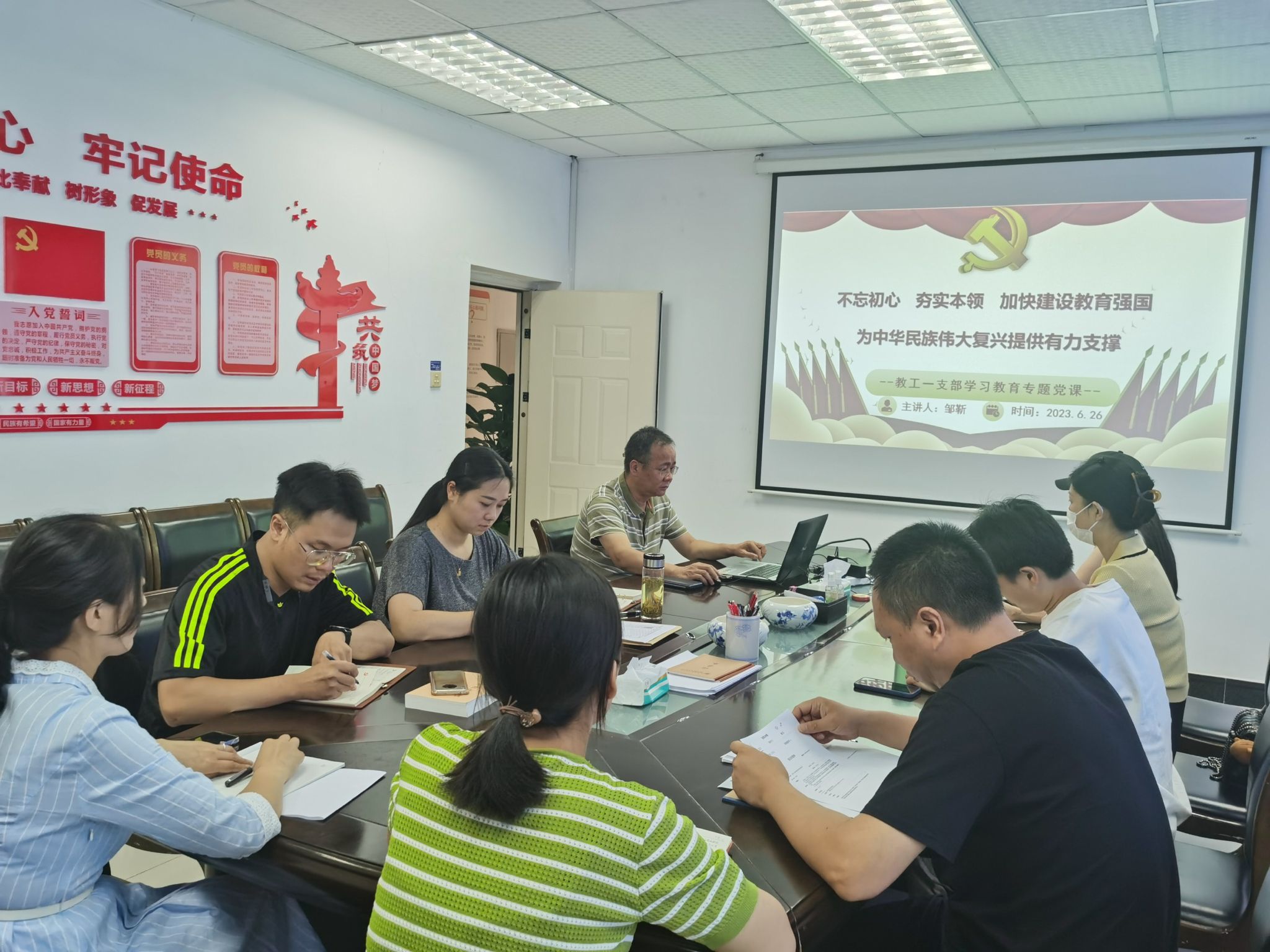 6月26日上午,教工一支部开展主题教育专题党课,支部书记邹靳同志为支部全体党员讲授主题为“不忘初心 夯实本领 加快建设教育强国 为中华民族伟大复兴提供有力支撑”的党课。