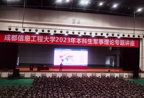 【本网讯】为全面贯彻党的教育方针、新时代军事战略方针和总体国家安全观,进一步做好学生军事理论课程教育工作,加强学生军事理论基础,弘扬爱国主义精神,10月12日,学校邀请西安交通大学人民武装部副部长问鸿滨教授、军事教研室王志朋老师到航空港、龙泉两校区为全体2023级本科生开展军事理论专题讲座,学校党委学生工作部相关工作人员和辅导员老师代表参加了讲座。