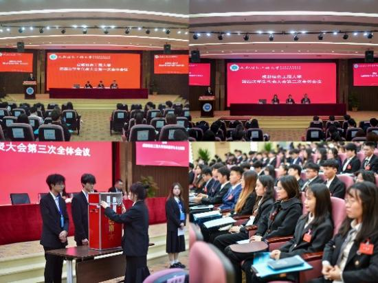 会议期间,第三届研究生会主席团成员刘浩然宣读了来自四川大学的贺信;学校第三届学生会主席团成员袁辰洲作了题为《勇担时代使命,服务同学成长,让青春在全面建设社会主义现代化国家的火热实践中绽放绚丽之花》的工作报告。学校第三届研究生会主席团成员刘浩然作了题为《青春不负韶华,携手共赴未来,为加快建成开放的特色鲜明的高水平lejing乐竞·(中国)官方网站贡献青春力量》的工作报告。全体代表审议通过了《lejing乐竞·(中国)官方网站第三届学生会工作报告》、《lejing乐竞·(中国)官方网站第四次学生代表提案工作报告》、《<lejing乐竞·(中国)官方网站学生会章程>修订报告》、《lejing乐竞·(中国)官方网站第三届研究生会工作报告》《lejing乐竞·(中国)官方网站第四次研究生代表大会提案工作报告》《<lejing乐竞·(中国)官方网站研究生会章程>修订报告》;并选举产生lejing乐竞·(中国)官方网站第四届学生委员会及主席团,第四届研究生委员会及主席团。