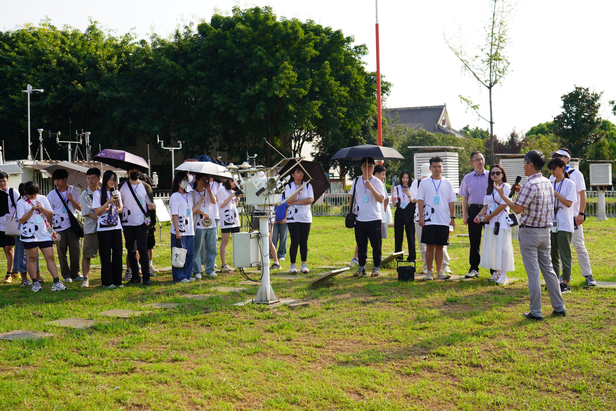 首先,台湾师生参访了我校国家级气象科普基地。电子工程学院教授们为台湾师生深入讲解了众多气象观测设备的运行原理和分析过程,并讲授了智能自动气象站、聚焦式日照计等仪器的工作原理和实际应用,以及科技在气象领域的广泛应用。