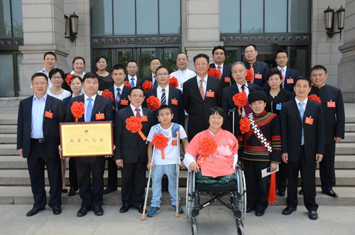 本次表彰大会由国务院残工委联合中共中央宣传部、人力资源和社会保障部、解放军总政治部、中国残疾人联合会共同在北京召开。党和国家领导人习近平、李克强、刘云山、张高丽等在北京人民大会堂会见受表彰的代表。