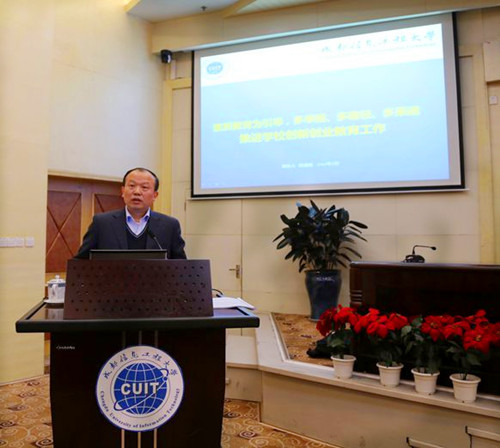 周激流作总结讲话,就我校创新创业教育工作提出三点要求:一是全校上下要提高思想认识,认真思考“大学生能否创业、能否成功创业、创什么业”等创新创业教育面临的根本问题;二是相关部门要打造好创新创业教育的“硬环境”,从物理空间、经费支持、激励政策等方面为师生创新创业活动做好保障;三是在全校范围内营造好创新创业教育的“软环境”,从组织领导、队伍建设、课程建设、文化建设等方面深化具有成信特色的创新创业教育改革。