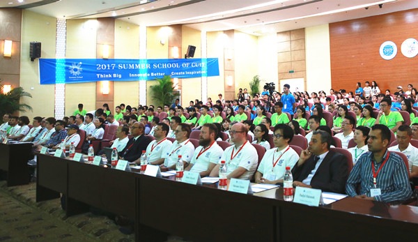 【本网讯】7月12日,学校2017年暑期国际教育周(2017 Summer School of CUIT)在学校国际会议厅盛大开幕。本次暑期国际教育周邀请了11个国家的21位外籍专家,分别来自哥伦比亚大学、美国科罗拉多州立大学、皇家墨尔本理工学院等国际知名学府,全体外籍专家与16个学院学生代表齐聚一堂,共同开启了此次活动。学校副校长何建新以及学校有关单位负责人参加了开幕式。