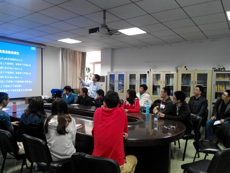 报告会结束后,朱老师与学院老师、同学进行了深入的交流讨论,还和大家分享了自己在学术方面的一些体会和经验,使得研究生对于拓扑学和数学分析方面的知识有了更深刻的了解与认识。