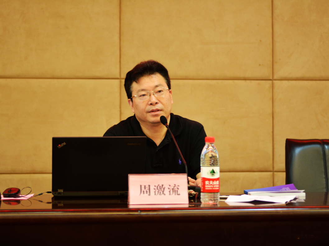 周激流从学校的历史变迁、学校现状、学校建设目标、国家层面关于高等教育的重大措施、全面深化改革的内容、国内外两所高校快速发展的成功案例等六个方面作了深刻阐述。他指出,1951-2015年,学校的历史发展、全国排名、四川排名、专业与学科排名、师资队伍排名、收入及硬件建设都有显著的变化。学校要坚持育人为本,牢固树立人才培养中心地位,全面深化改革创新管理体制,建立现代大学管理体制;全力推进学科建设,科学定位,突出特色,加强合作,追求卓越;全面提高人才培养质量,着力培养高素质应用型高级专门人才;全力推进国际化程度,加强教育理念、教师队伍、人才培养课程建设、科学研究的国际化;全面改善办学条件,建设开放的特色鲜明的高水平信息工程大学。
