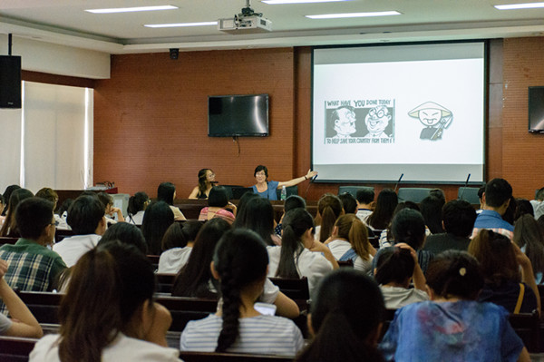【本网讯】6月21日下午,美国新罕布什尔大学MONICA CHIU教授到龙泉校区一教二会议室,为文化艺术学院师生带来了一场精彩的讲座----“漫画家杨谨伦笔下的首位华裔超级英雄---漫画体叙事游记”( Gene Yang’s Chinese American Shadow Hero, the first Chinese American superhero)。学院视觉传达设计、汉语国际教育专业本科生和部分教师100余人聆听了讲座。讲座由文化艺术学院廖思湄教授主持。