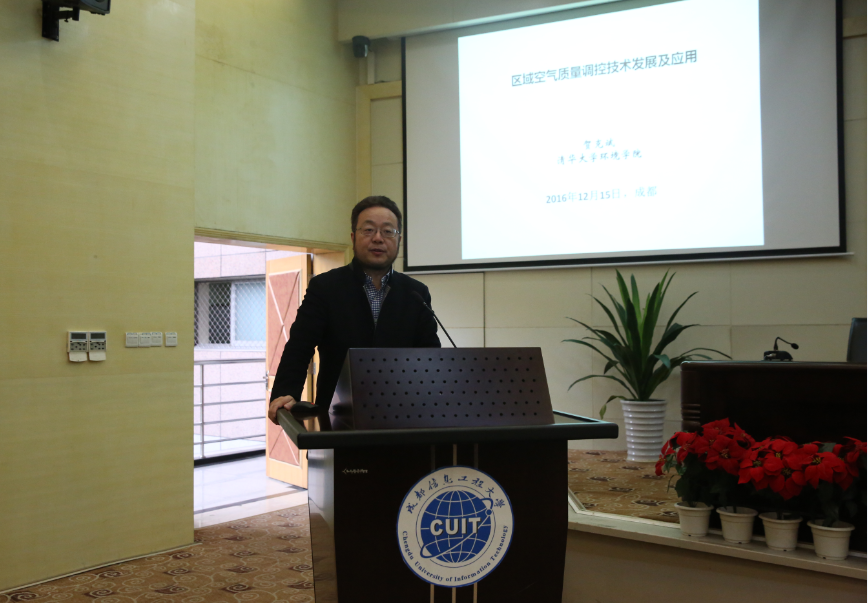 【本网讯】12月15日下午,在我校航空港校区国际会议厅举行了一场由中国工程院院士贺克斌给全校师生带来的主题为“区域空气质量调控技术体系的发展与应用”专题报告。校长助理、大气科学学院院长范广洲,资源环境学院院长叶芝祥、副院长刘盛余及徐成华,成都市科学技术顾问团办公室相关人员,学校科技处、宣传统战部相关工作人员及广大教师、学生参加了此次报告。报告由范广洲主持。